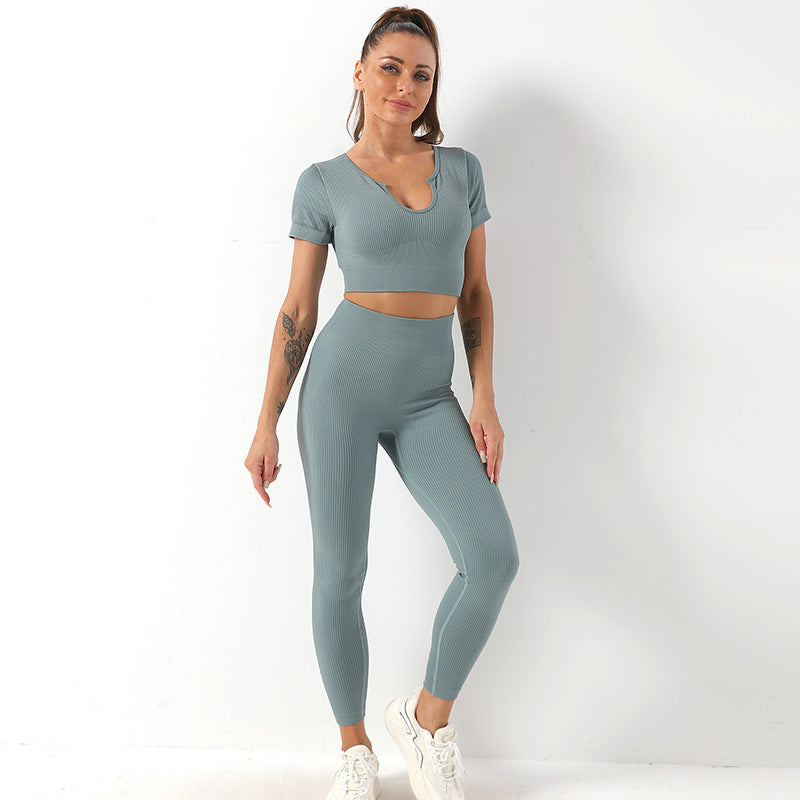 With a composition of 90% nylon, this seamless yoga 2-piece offers incredible elasticity and quick-drying capabilities, making it the perfect choice for any workout routine. Its chemical fiber blend also ensures a comfortable fit that will last.